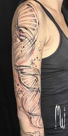 ...est l'or noir de l'être humain. Dans mon processus de création, je considère le tatouage comme un moyen fabuleux de transformation personnelle. Autrefois rite de passage, de protection, je considère cette pratique comme un rituel pour se retrouver, se raccorder à son âme, réparer ou retrouver son histoire. Ancré au cœur de l'humanité depuis toujours, l'acte de tatouer mérite d'être perpétué dans la noblesse dont il fût l'objet dans de nombreuses civilisations. Capable de soulager des deuils, des douleurs émotionnelles et physiques oubliées ou enfouies dans notre inconscient, le tatouage est à mes yeux un cadeau à recevoir et à respecter. C'est en cela que l'importance accordée à l'histoire de mes clients est primordiale dans le processus de création. L'aspect graphique, visuel, parfois ludique possède toute sa place dans le tatouage contemporain mais mes convictions sont opposées à une vision égotique et superficielle, qui nuit à l'intégrité de cette pratique artistique. Cette capacité de lecture de l'être humain que je construis au fil des années, me permet de dessiner et encrer ce qui vous correspond, hors de l'effet de mode. Ainsi, dans le respect le plus total de chaque individu qui me sollicite, je met à cœur de donner du sens à chaque tatouage réalisé.